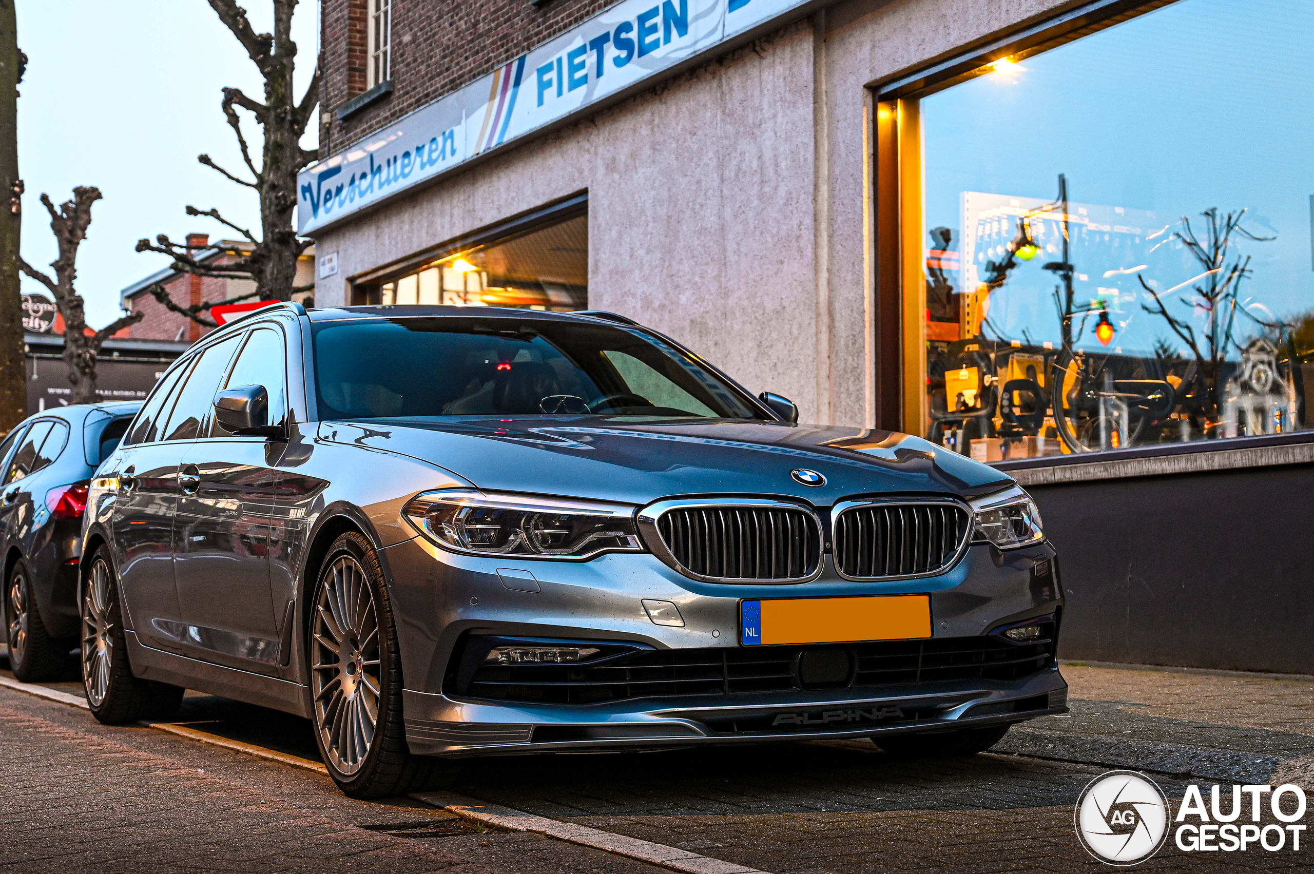 Gespot op 1-4-2026. Had zin in chips en ging even halen met de fiets bij de lokale nachtwinkel. En ik had geluk. Nog eens een kneiterdikke Alpina kunnen spotten. Wat ben ik zelf toch een ongelooflijke fan van dit soort modellen. Een paar foto´s uit de losse pols proberen te schieten. Maar het werd echt te donker. Dus vlug naar huis voor statief en gelukkig had ik nog tijd. Toen de eigenaar aankwam had de partner ook meer interesse in een knalgroene Renault 5 (die nieuwe) die iets verder stond. Ze vond het wel een grappig ding. Deze heeft trouwens ook al een behoorlijke geschiedenis opgebouwd op AG.